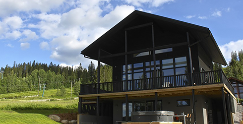 Pohjois-rinteeseen rajoittuvalta pihalta pääset suoraan suksilla rinteeseen ja hiihtoladulle. Talo on kirjaimellisesti laskettelurinteen vieressä, joten monot voi liittää siteisiin jo pihalla ja siirtyä suoraan mäkeen. Ulkoilun jälkeen voi varusteet tuoda kodinhoitohuoneeseen oman sisäänkäynnin kautta. Taloa ympäröivät hulppeat terassit, jotka kesäkäyttöä ajatellen tarjoavat mitä parhaimman tavan nauttia auringosta.
